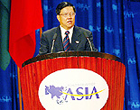 Long Yongtu, secretario general del Foro de Boao, pronuncia un discurso en la jornada inaugural