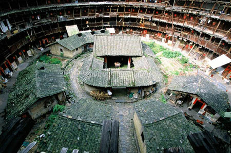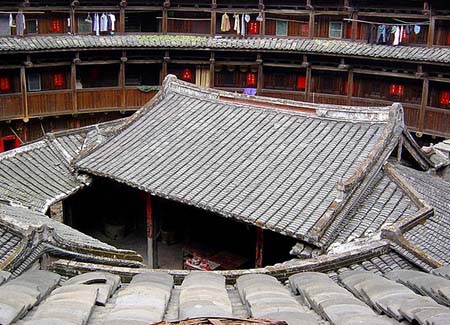 Las torres de tierra distribuyen principalment en el oeste de la provincia de Fujian. En el pasado, debido al atraso económico y a la comunicación difícil había muchos bandidos y peleas armadas en esta zona. Así que después de bajar de la cuenca del río Amarillo en el norte del país, los hakkas, una rama de los hans (etnia mayoritaria de China), construyeron torres de tierra a modo de castillo, que son una especie de viviendas peculiares para defenderse de los bandidos. Estas torres son económicas, sólidas y adecuadas para la defensa propia y tienen un alto valor de arte.