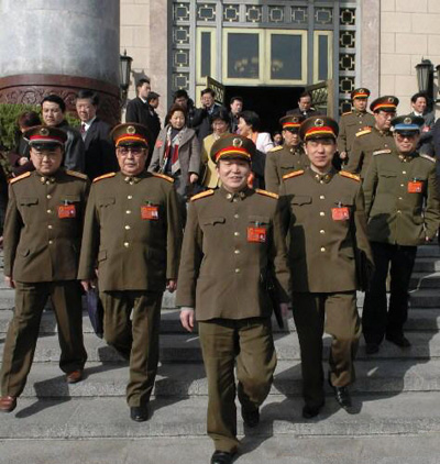 El día 14 se clausuró la III Sesión de la X Asamblea Popular Nacional en el Gran Palacio del Pueblo en Beijing. En la foto, diputados saliendo del salón de reuniones.