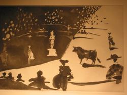 La exposición se divide en 8 secciones que van desde las pinturas de vestidos teatrales del “tricornio” a las ilustraciones realizadas por el pintor a partir de los poemas del escritor del Siglo de Oro espa?ol Luís de Góngora, pasando por las aguatintas realizadas en 1957 para ilustrar el libro “l(fā)a Tauromaquia. El Arte de Torear” de José Delgado (tratado sobre el toreo y el mundo de los toros), las ilustraciones realizadas en 1949 para ilustrar una edición de “Carmen”, las ilustraciones para una edición del clásico de 1499 atribuido a Fernando de Rojas “La Celestina”, los grabados realizados en 1968 para ilustrar la comedia en tres actos “El Cocu Magnífico” del escritor Fernand Crommelynck, o las aguafuertes realizadas en 1942 para ilustrar la obra “Historia Natural” de Geoges Louis Lequerc o las ilustraciones realizadas para Pierre de Reverdy.