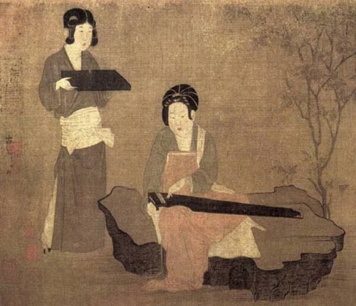 Dibujo de afinar la cítara y probar el té (parte)     Zhou Fang    (Dinastía Tang)