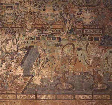 Danza a la música el número 220 de la Gruta Mogao (los principales de la Dinastía Tang)