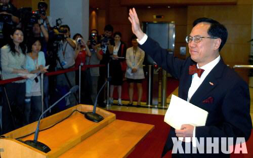 Donald Tsang afirmó el Jueves durante una conferencia de prensa que la Región Administrativa Especial de Hong Kong (HKSAR) le informó de que el Consejo de Estado había admitido su renuncia a secretario administrativo, con lo que su campa?a para el puesto de Jefe Ejecutivo de la SAR había empezado formalmente.