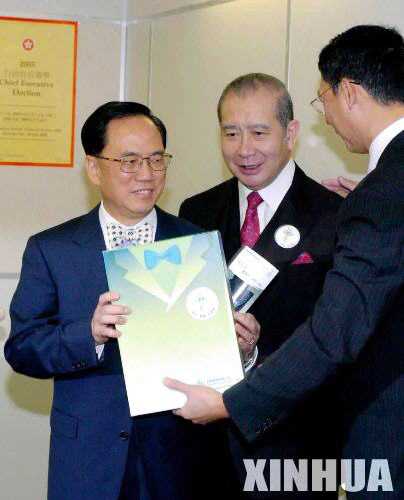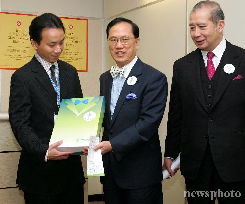 Donald Tsang entregó hoy su formulario de nominación a la Oficina Electoral y de Registro de la Región Administrativa Especial de Hong Kong (RAEHK) para hacer oficial su candidatura a las elecciones de jefe ejecutivo de la RAEHK.