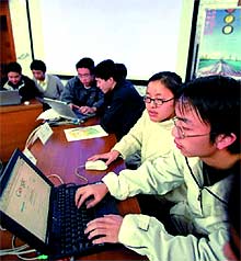 La divulgación gradual de la tecnología de banda ancha ha impulsado el desarrollo de la educación por Internet. A finales de 2001, la Red de Estudios Científicos de Educación de China (CERNET) había construido una red de transmisión a gran velocidad de 20.000 kilómetros, con 28 canales de información de carácter internacional y regional que cubrían las principales ciudades de todo el país, haciéndose la segunda Internet de China. Ahora alrededor del 70% de los centros docentes supriores han creado sus propias redes. Comienzan a iniciarse los proyectos de construcción de las redes computerizadas de los planes de los centros de ense?anza superior de las regiones occidentales. La plataforma de transmisión por banda ancha y multimedia por satélite de la Estación Central de Educación (CETV), iniciada en 2000, posee capacidad para emitir 8 programas de televisión, 8 fónicos y más de 20 de radiodifusión de datos IP. Ella y la CERNET han estructurado conjuntamente una moderna red de educación a distancia a nivel nacional.