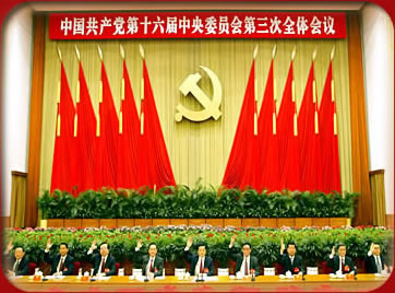 Del día 11 al día 14 de octubre de 2003, tuvo lugar en Beijing la tercera sesión plenaria del comité central del XVI Congreso del Partido Comunista de China. En dicha sesión se escuchó y se discutió el informe de trabajo presentado por Hu Jintao en nombre del buró político del comité central. Se examinó y se aprobó la “ decisión sobre algunas cuestiones del perfeccionamiento del sitema socialista de mercado ” así como la “ propuesta del comité central del Partido Comunista de China acerca de la enmienda parcial de la Constitución ”. Esta última será sometida al examen del comité permanente de la X Asamblia Popular Nacional. La convocación de la tercera sesión plenaria del comité central del XVI Congreso del Partido Comunista de China y las decisiones y documentos aprobados en ella constituyen, en su conjunto, un jalón importante en el proceso de la reforma en China. |