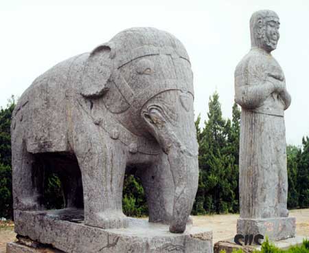 Esculturas de piedra ante una tumba imperial de la dinastía Song