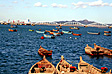 Barcos de pesca en el Nuevo Puerto de Dalian