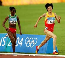 Xing Huina de China gana oro en 10,000m femenil en JJOO de Atenas