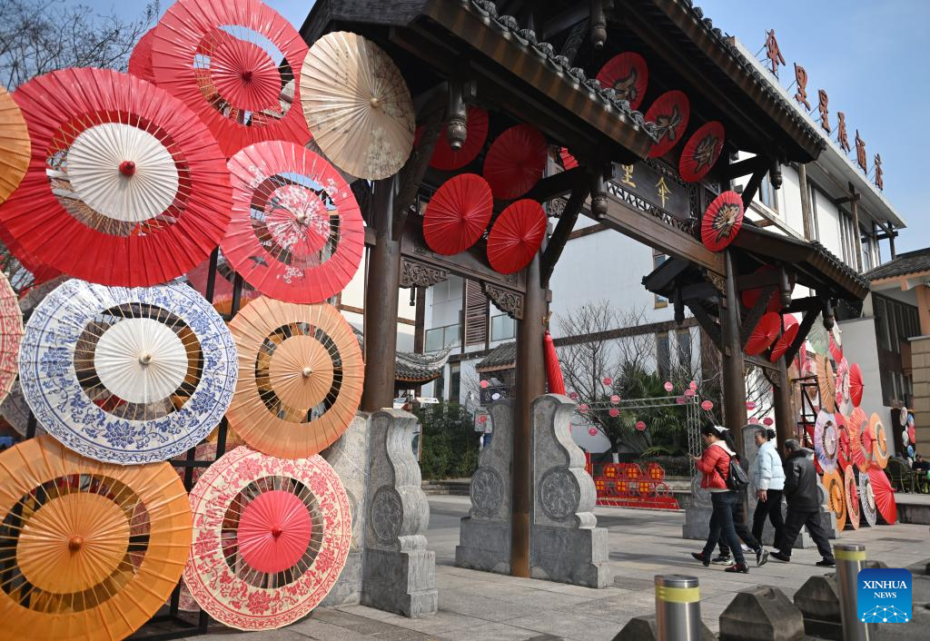 Historia de la fabricación de sombrillas de papel de aceite en Fenshuiling, provincia suroccidental china de Sichuan