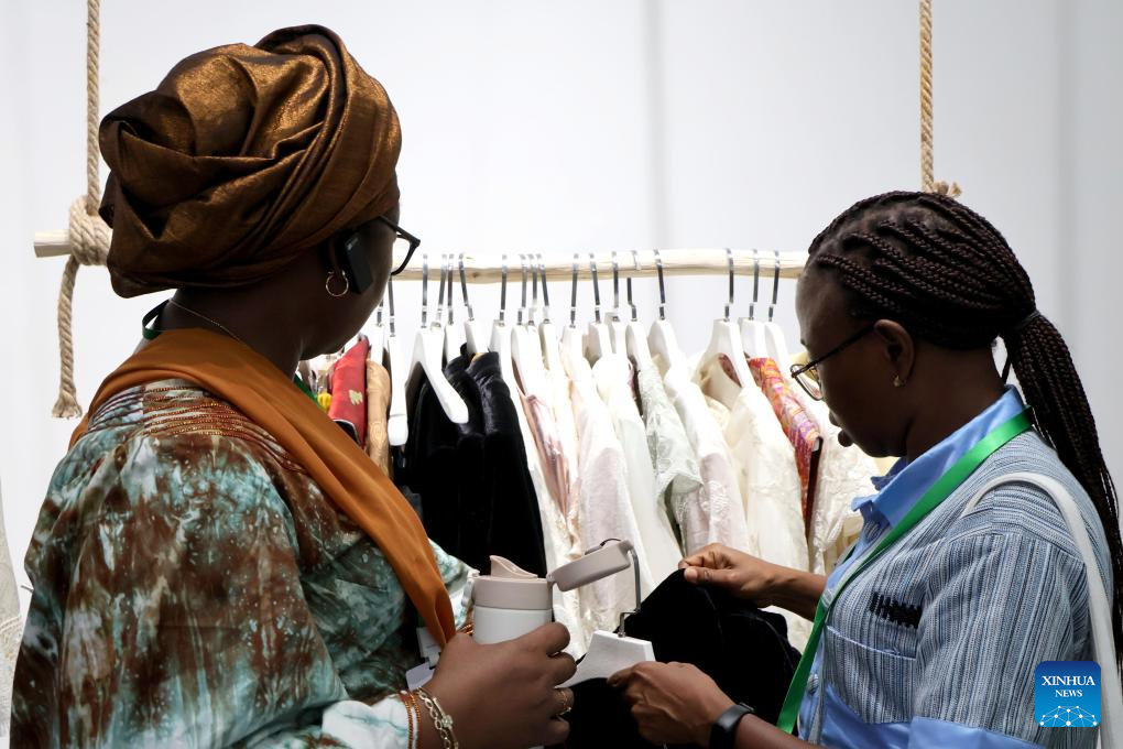 Participantes de un curso de formación organizado por la Universidad de la Mujer de China seleccionan hanfu en una base de hanfu en el distrito de Caoxian, provincia oriental china de Shandong, el 19 de junio de 2025. (Xinhua/Wang Yiliang.)