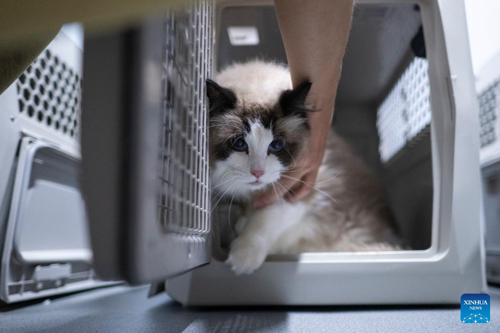 Un pasajero coloca a su gato mascota en una maleta transportadora en la Estación del Ferrocarril de Wuhan, en Wuhan, en la provincia de Hubei, en el centro de China, el 1 de julio de 2025. En el primer día de la temporada alta de viajes de verano de este a?o, algunos gatos y perros domésticos calificados abordaron el martes trenes bala acompa?ando a sus due?os en Wuhan, ya que el servicio piloto de envío de mascotas en ferrocarriles de alta velocidad amplió su alcance a partir del 20 de junio. (Xinhua/Wu Zhizun)