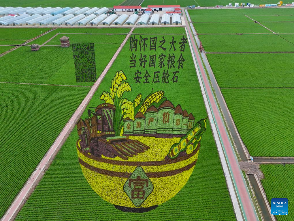 Vista aérea tomada con un dron el 3 de julio de 2025 de un parque de campo de arroz, en la ciudad de Fujin, en la provincia de Heilongjiang, en el noreste de China. En la actualidad, en las áreas productoras de arroz de la provincia de Heilongjiang, diversas imágenes magníficas de campos de arroz "dibujadas" por diferentes variedades de arroz se despliegan sobre la vasta tierra negra. (Xinhua/Qu Yubao)