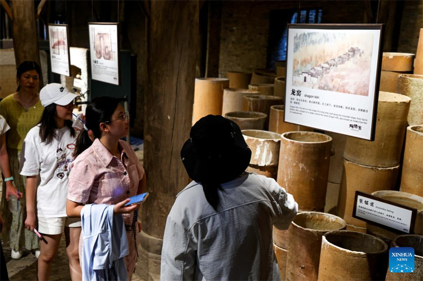 Turistas visitan el bloque histórico y cultural de Taoyangli en la ciudad de Jingdezhen, provincia de Jiangxi, en el este de China, el 13 de julio de 2025. (Xinhua/Liu Jinhai.)