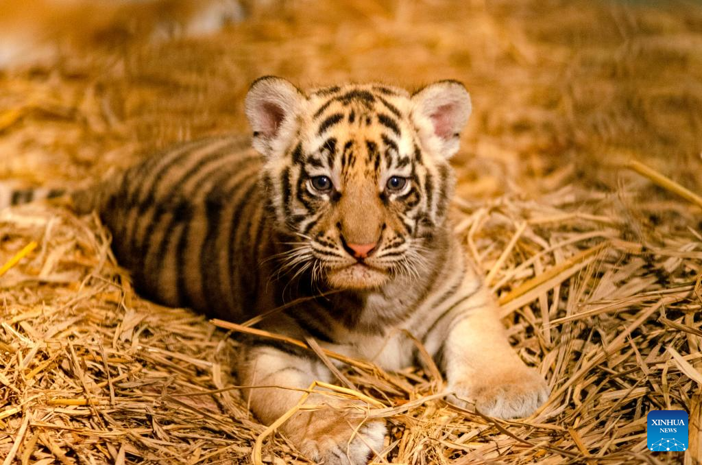 Un cachorro de tigre de bengala es visto en el Zoológico de Bandung, en Java Occidental, Indonesia, el 18 de agosto de 2025. Dos cachorros de tigre de bengala machos nacieron aquí el 12 de julio. (Xinhua/Septianjar Muharam)