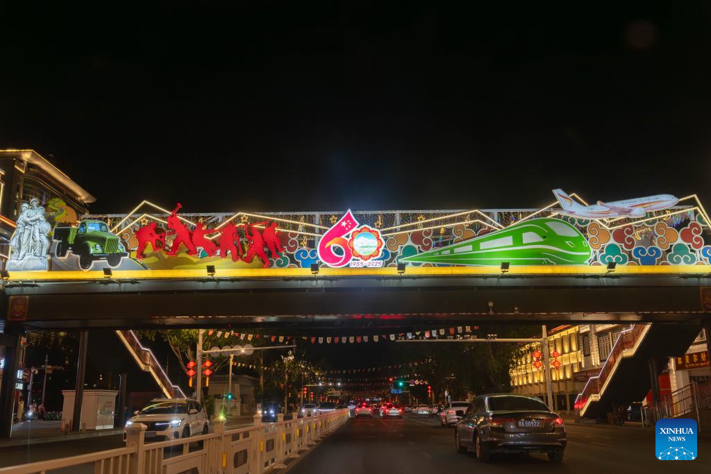 Imagen del 19 de agosto de 2025 de una vista callejera, en Lhasa, en la región autónoma de Xizang, en el suroeste de China. Las calles de Lhasa se adornan con faroles y adornos para celebrar el 60 aniversario de la fundación de la región autónoma de Xizang. (Xinhua/Tenzing Nima Qadhup)