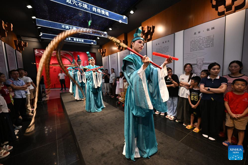 Esta foto tomada el 20 de agosto de 2025 muestra una escena durante una actuación en directo en el parque cultural Hairui, en Haikou, provincia de Hainan, en el sur de China. (Xinhua/Pu Xiaoxu.)