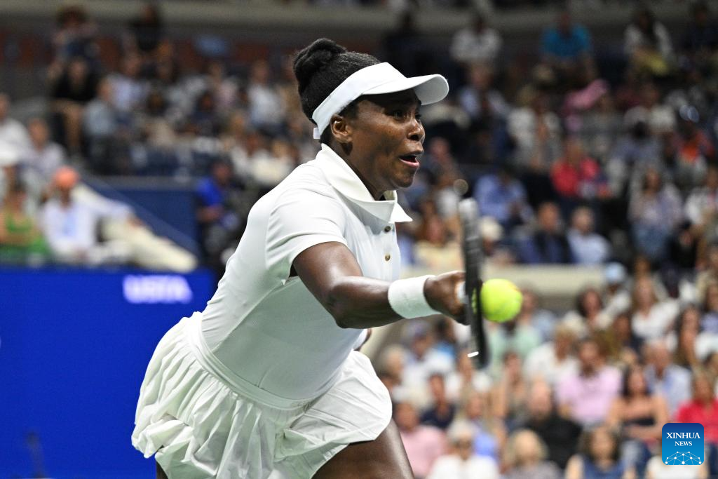 Imagen del 25 de agosto de 2025 de Venus Williams, de Estados Unidos, devolviendo la pelota durante el partido de primera ronda de individuales femeninos, ante Karolina Muchova, de República Checa, en el campeonato de tenis US Open 2025, en Nueva York, Estados Unidos. (Xinhua/Li Rui)