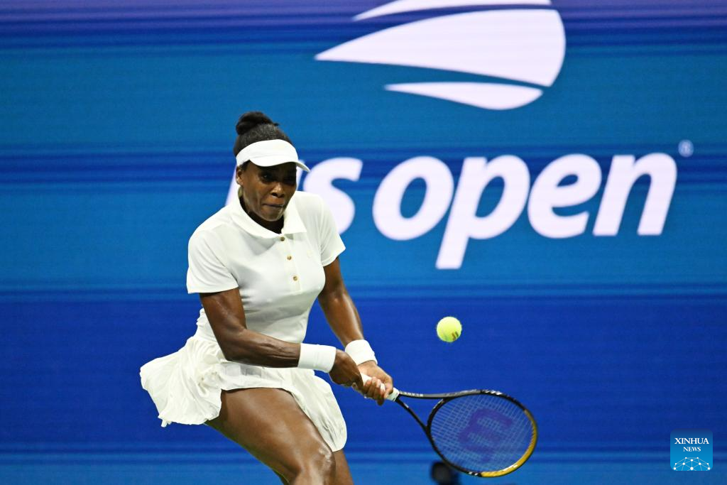 Imagen del 25 de agosto de 2025 de Venus Williams, de Estados Unidos, devolviendo la pelota durante el partido de primera ronda de individuales femeninos, ante Karolina Muchova, de República Checa, en el campeonato de tenis US Open 2025, en Nueva York, Estados Unidos. (Xinhua/Li Rui)