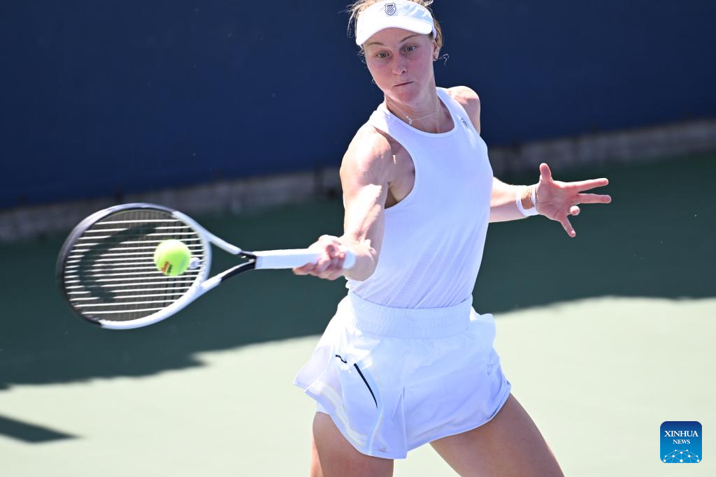 Imagen del 25 de agosto de 2025 de Liudmila Samsonova, de Rusia, devolviendo la pelota durante el partido de primera ronda de individuales femeninos, ante Yuan Yue, de China, en el campeonato de tenis US Open 2025, en Nueva York, Estados Unidos. (Xinhua/Li Rui)