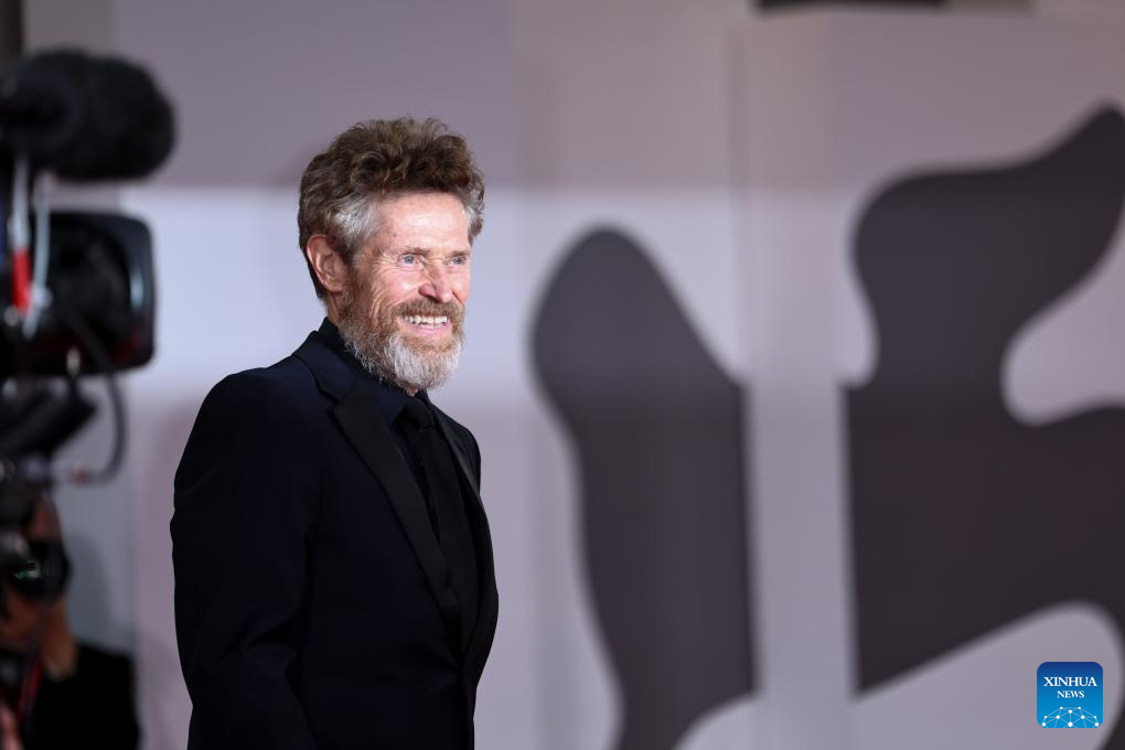Imagen del 28 de agosto de 2025 de Willem Dafoe llegando a la alfombra roja del estreno de "Bugonia" durante el 82° Festival de Cine de Venecia, en Venecia, Italia. (Xinhua/Li Jing)