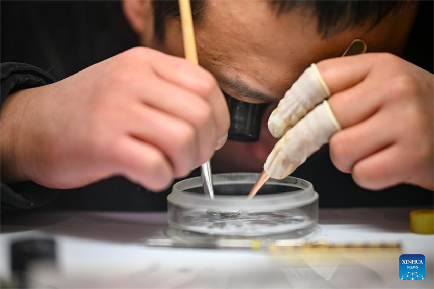 Un artesano limpia una pieza de reloj en una tienda del ?callejón de las reparaciones? en Tianjin, norte de China, el 9 de diciembre de 2025. (Xinhua/Zhang Cheng).